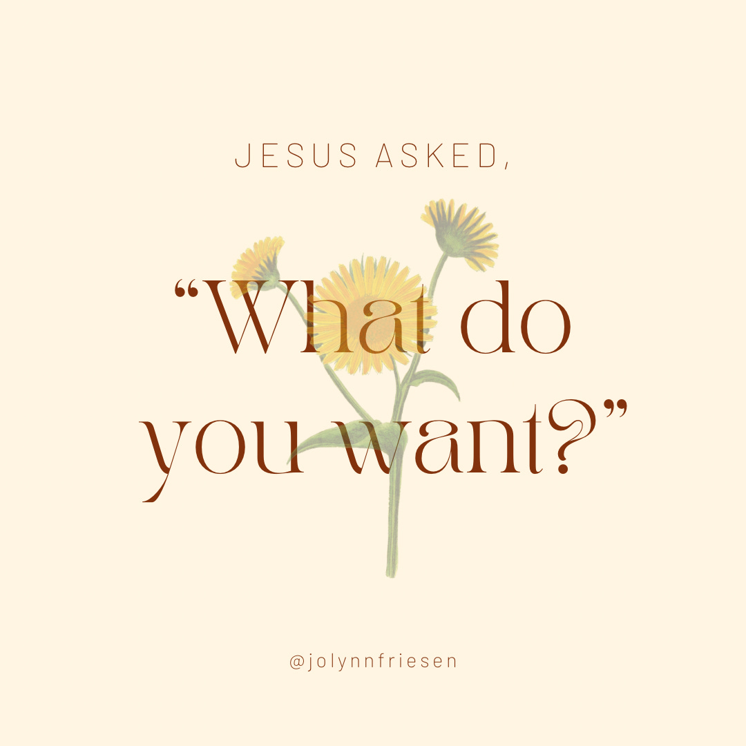 I think of Jesus, when he looked at the two disciples who were following him (John 1:38). He turned around and asked, “What do you want?”